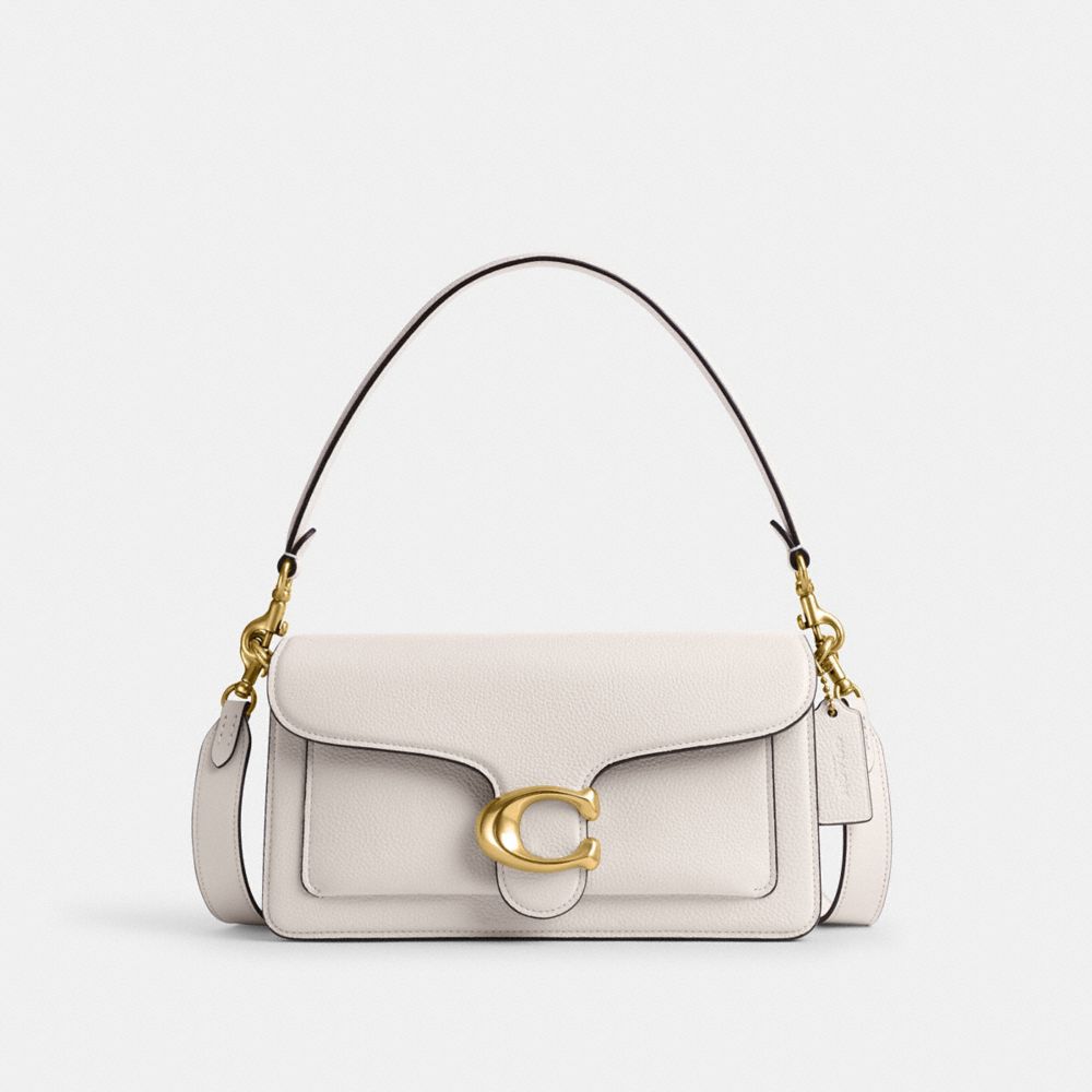 COACH®,Tabby Shoulder Bag 26,Leather,Shoulder Bag,Metal,Logo,Compact,Gold Metal,Day Party,White,Front View