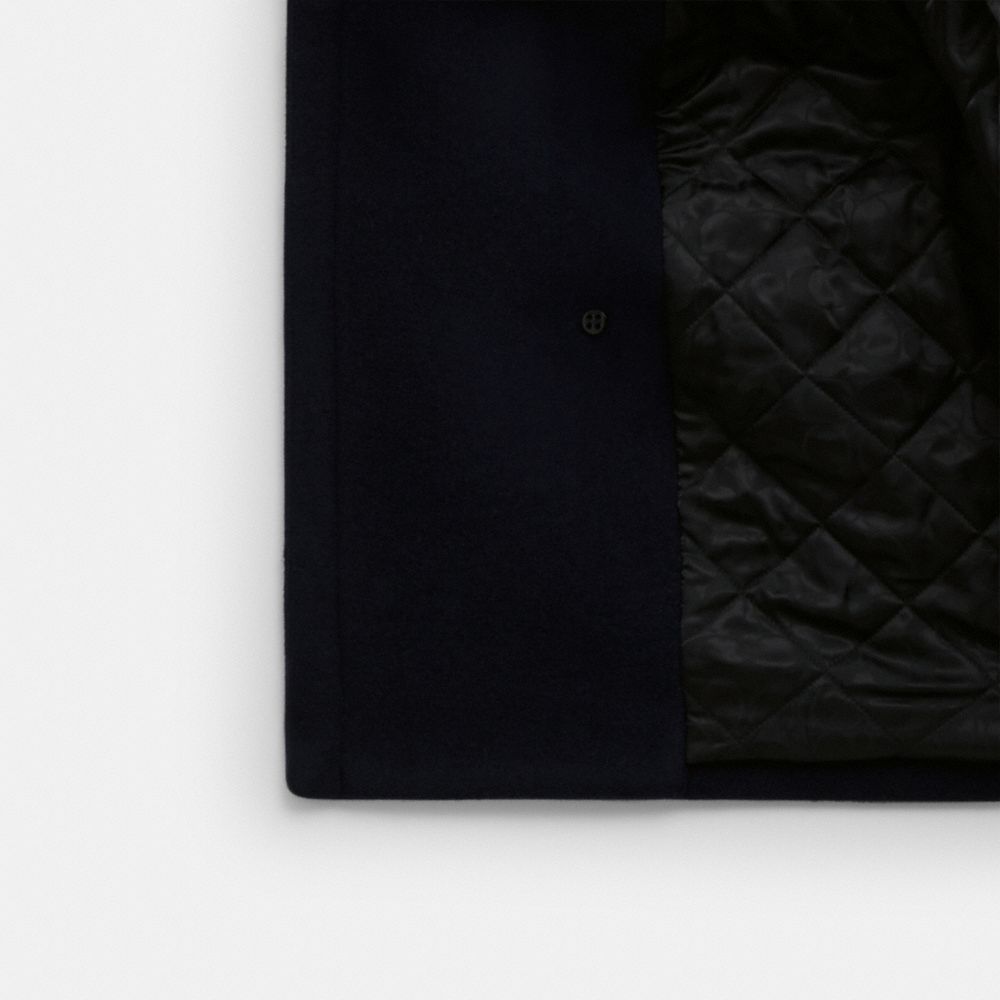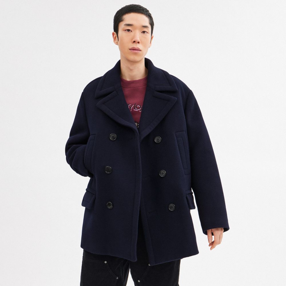 Presenting the Lil Nas X Drop, an edit designed by Coach and curated by Coach Ambassador Lil Nas X, celebrating his unique and expressive approach to style. An updated take on an iconic naval silhouette, this sleek double-breasted coat is crafted of a warm wool-blend and features a traditional pointed collar along with a mix of slip and flap pockets.