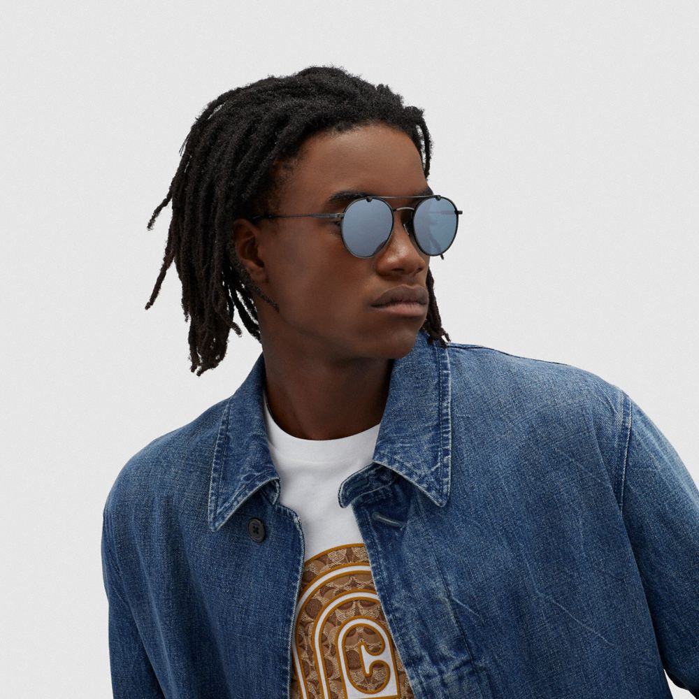 Iconic round-shape frames get a sporty update with a military-inspired brow bar. Adjustable nose pads and complete protection from UVA and UVB rays make them perfect for every day.