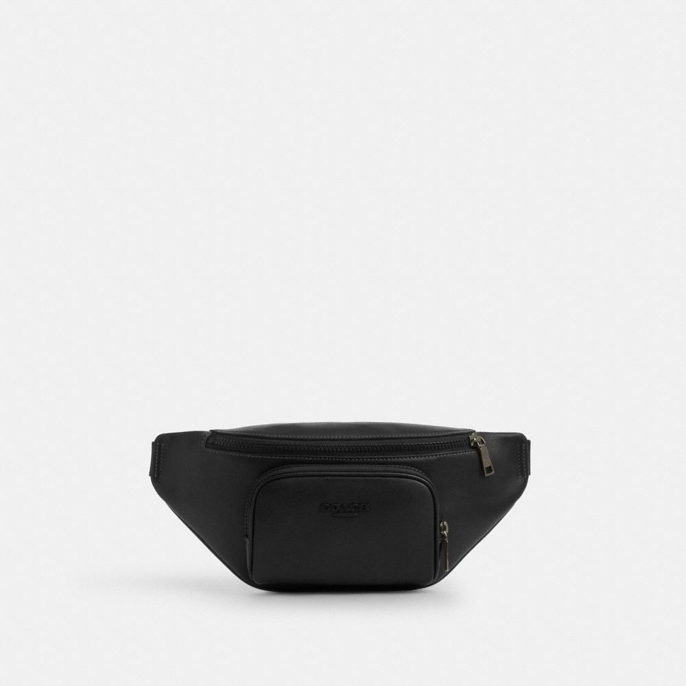 COACH®,Racer Small Belt Bag,Calfskin Leather,Belt Bag,Metal,Logo,Casual,Black,Front View