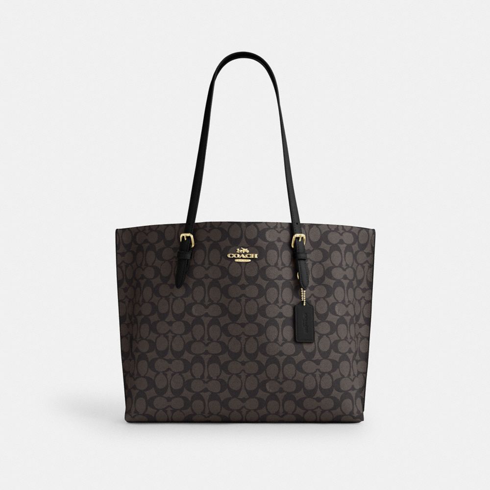 COACH®,Mollie Tote Bag 25 In Signature Canvas,Crossbody,Casual,Brown,Front View