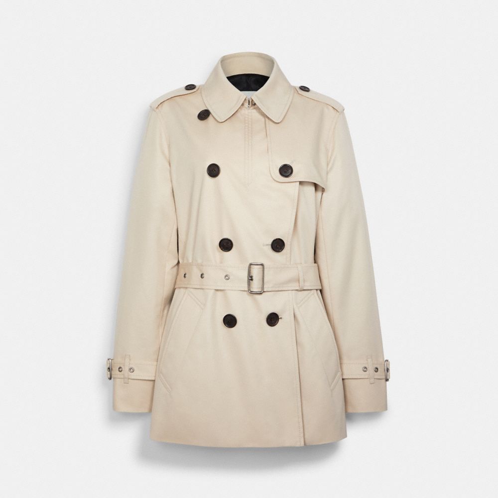COACH®,Solid Short Trench Coat,,Front View