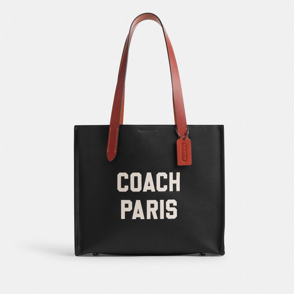 Tote 34 In Polished Pebble Leather With Signature Canvas Detail