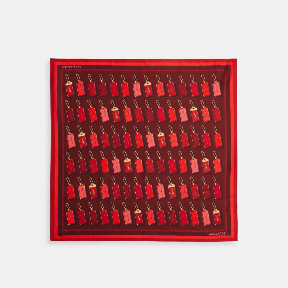 COACH®,Horse And Carriage Hangtag Print Silk Bandana,Silk,Bandana,Logo,Casual,Red,Front View