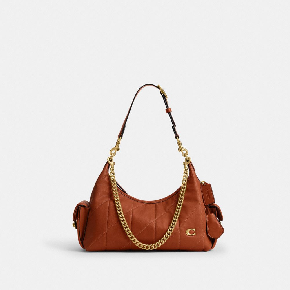 COACH®,Chelsea Shoulder Bag 36,Leather,Suede,Shoulder Bag,Metal Material,Pendant,Lined,Brass,Casual,Brown,Front View